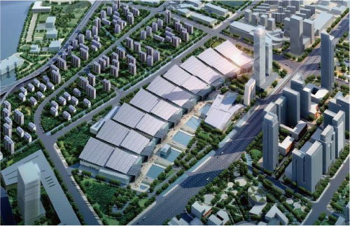 总体规划:八座单层展馆、一座多功能厅,6000个国际标准展位,30000平方米室外展场。