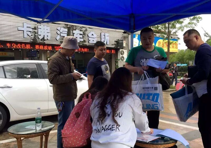 "好活动,肯定都得抢。"等待排队的部分车友则在相互交流,回忆几天前“抢”车贴的心得。5月26日上午10点,全城车贴活动的微信通道一经开通,车贴便在5分钟内被抢光。一位车友直言,年年参加车贴活动,但都未成功,今年终于通过南京国际车展的官方微信抢到了车贴名额。