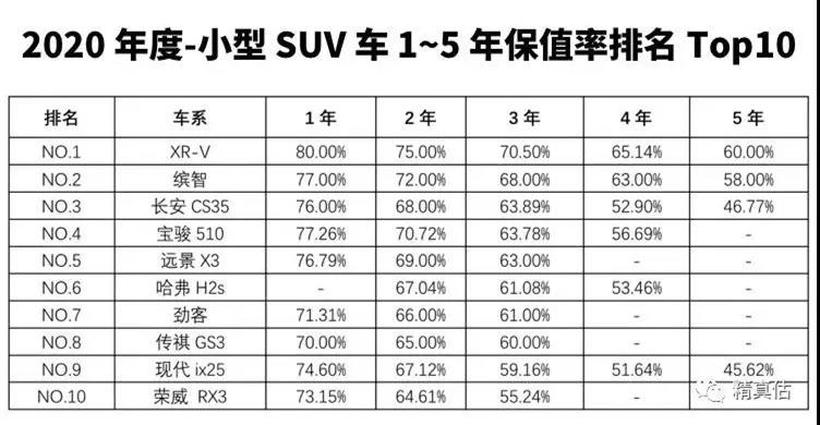 1、CR-V:排名第一的是我们的老朋友“保值神器”CRV——三年保值率79.97%。其低油耗、保养成本低及高普及率,都是它的筹码。