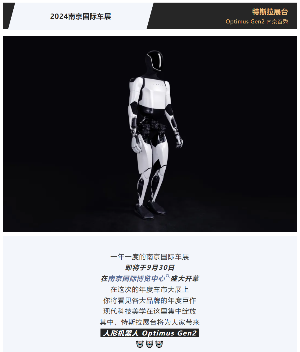 重磅!特斯拉Optimus Gen2人形机器人首次亮相十一南京车展!
